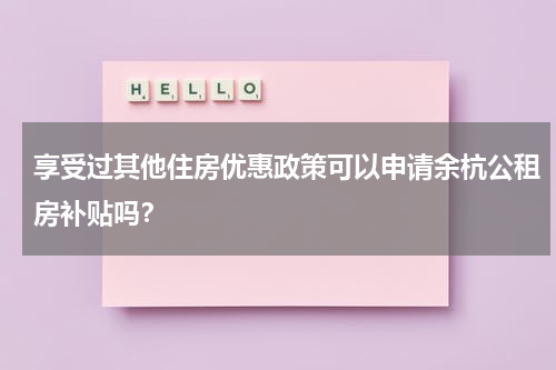 根据我所了解的信息,具体是否可以申请余杭公租房补贴取决于当地政策和相关规定。一般而言,公租房补贴会有一定的资格条件,可能包括家庭收入、住房状况等方面的要求。如果您已经享受过其他住房优惠政策,可能会对您是否具备申请公租房补贴的资格产生影响。为了确切了解您的情况以及当地政策,建议您咨询当地房屋管理部门或相关部门,以获取准确的答案。